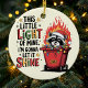 Add some light-hearted chaos to your holiday decor with this quirky Christmas ornament, featuring a mischievous racoon in a flaming dumpster with the phrase "This Little Light of Mine, I'm Gonna Let It Shine." Perfect for adding a dash of humour to the season, this ornament includes space for a monogram, making it a unique and memorable gift. Ideal for friends, family, or anyone who enjoys a little festive sarcasm.