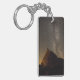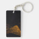 A key ring with a photo on either side of the Broch, Carloway, Isle of Lewis at night with stars and the milky way.