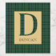 Handsome design celebrating your Scottish heritage, features monogram letter D in Clan Duncan tartan plaid with matching border and customisable text