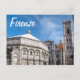 Postcard of the Piazza San Giovanni square with the Duomo cathedral, the Baptistry of St. John and the Campanile di Giotto in the city centre of Florence, Tuscany, Italy with the text: 'Firenze', Italian for 'Florence'.