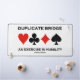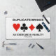 If you play duplicate bridge and have gone down 800 or 1100 or more, you'll enjoy this duplicate bridge truism desk mat, which include the saying "Duplicate Bridge An Exercise In Humility". Comes with all four card suits. No need to go into further details with this memorable and humble bridge attitude desk mat!