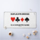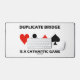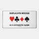 Keep fellow duplicate bridge players guessing at what you mean with this intellectual bridge saying desk mat featuring the four card suits along with the following bridge observation: "Duplicate Bridge Is A Cathartic Game". No need to be emotional about the game of duplicate bridge to enjoy!