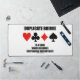 Are you a duplicate bridge player? Face it - duplicate bridge is a game that requires continuous improvement. The reduction of errors is important when playing the game. Let your wry duplicate bridge player side shine with this desk mat featuring the four card suits along with the saying "Duplicate Bridge Is A Game Which Requires Continuous Improvement".