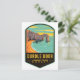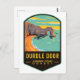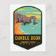 A vintage park badge design of Durdle Door, a natural limestone arch on the Jurassic Coast near Lulworth in Dorset, England.