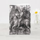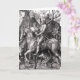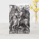 Albrecht Durer Knight Death and the Devil greeting card. Woodcut engraving from 1513. One of Northern Renaissance artist Albrecht Durer’s most famous engravings, Knight Death and Devil is an allegorical work featuring a northern European knight riding in full armor on a horse flanked by Death, who holds an hour glass, and the devil in the form of the a goat. The work represents the Christian struggle against time and temptation. A great gift for fans of Albrecht Durer, Northern Renaissance Art, Woodcut Engravings, and knight and medieval depictions.