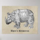 Dürer's Rhinoceros is the name commonly given to a woodcut executed by German painter and printmaker Albrecht Dürer in 1515. He depicts an animal with hard plates that cover its body like sheets of armor, with a gorget at the throat, a solid-looking breastplate, and rivets along the seams; he also places a small twisted horn on its back, and gives it scaly legs and saw-like rear quarters. None of these features are present in a real rhinoceros. Despite its anatomical inaccuracies, Dürer's woodcut became very popular in Europe and was copied many times in the following three centuries. It was regarded by Westerners as a true representation of a rhinoceros into the late 18th century
