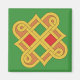 This knotwork design illustration is based on interlace designs seen in the 7th century Insular (aka Hiberno-Saxon) illuminated manuscript known as the Book of Durrow. Here the centre diamonds are in Christmas red and green.
