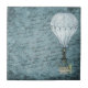 This design features a Victorian Steampunk Hot Air Balloon gently flying in front of a scrapbook background page filled with handwriting washed with shades of soft, dusk blue.