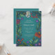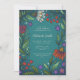 Moody and romantic like a dusky night sky, this baby shower invitation is easily to personalise and features a hand-drawn frame of Scandinavian-inspired bell flowers, coneflowers, leaves and magical sparkles in a modern colour palette of deep teal, red, orange and purple perfectly suited for the mama to be that loves nature and is a little bit witchy.