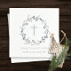 Dusky Blue Floral Laurel Wreath Monogram Baptism Napkin