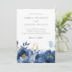 Dusky Blue Gold Floral QR Photo Wedding Invitation