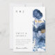 Dusky Blue Gold Floral Wedding Invitation