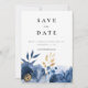Dusky Blue Gold Floral Wedding Save the Date