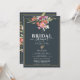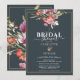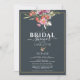 Lovely traditional floral bouquet in pink with gold look accents on dusky blue Bridal Shower Invitation!