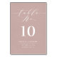 Dusky pink painted elegant script text wedding table numbers. Part of a modern, minimal, elegant wedding collection. Available in different colour ways.
