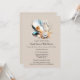 A plain, simple and elegant design of a single white seahorse edged with pale orange floating in front of an open shell which has a pearl resting inside it. The 3D graphic is set against a dusky salmon pink coloured background that has dark grey calligraphy script templates on it which may be personalised to suit your occasion. The shell and pearl appear to sparkle and shine and both have a mother of pearl finish to them. The back template should be deleted if no additional information is required for your guests. These are ideal for beach, nautical, under the sea, tropical island or coastal destination weddings, birhdays and special events.