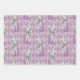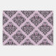 Vintage mauve and black Paris themed wrapping paper in three different styles including a harlequin lady, floral damask, and rose patterns.