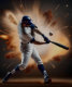In this captivating scene, a baseball player stands poised at the plate, With a fierce concentration and an explosive swing, he makes contact with the baseball, sending it soaring into the night sky. The impact is so powerful that it kicks up a massive cloud of dust from the infield, creating a dramatic visual that perfectly captures the intensity and excitement of America's pastime. This moment embodies the raw energy and skill of the game, showcasing the player's prowess while simultaneously reminding us of the beauty and chaos that comes with each swing.