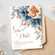 Set the tone for your wedding day with this stylish Dusty Blue and Terracotta Garden Elegant Wedding Save the Date. Designed to match your unique theme, this modern and chic announcement blends soft dusty blue and warm terracotta hues for a perfect balance of elegance and rustic charm. Worried about sending out the right save the dates? This design ensures your wedding style is reflected beautifully, setting the stage for the big day while giving your guests a sneak peek of the celebration ahead. Don’t let the fear of missing out on style stop you—customise your save the date now and make sure your wedding vibe starts on the perfect note.