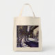 The printing came out very well, better than I had anticipated. The natural color fabric is sturdy with strong seams and comfortable handles. This tote fits easily over my shoulder. As it is filled, the bottom flattens out--very cool! I would buy this product again. This grocery tote holds a lot of groceries! The image quality was very good. The colors were a little darker than I had expected. The darkness may have been due to printing on a natural color fabric rather than on white. The cat design is attractively centered on the tote. The spirit of the design is very lively, just as it appears on the Zazzle website.