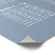 Chic downloadable dusty blue wedding seating chart poster sign for up to 16 tables featuring "find your table" in a stylish white script with swashes, your first names and wedding date joined together by a heart and the table numbers and guest names in simple white typography. The digital download option allows you to edit with last minute changes and print locally.