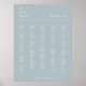 This simple minimalist dusty blue alphabetical seating chart will be great for your wedding. Easy to personalise with your guest list and names. You can also add your own background colour to better suit your wedding theme.