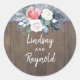 Dusty Blue and Blush Rustic Country Wood and Linen Classic Round Sticker