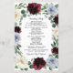 Dusty Blue and Burgundy Boho Fall Wedding Programs - feature a eucalyptus and greenery wreath decorated with ivory/white, dusty blue/slate/steel and burgundy/cranberry flowers. View the matching collection on this page to find coordinating products to complete the theme. You can fully customise this ceremony program to your liking.