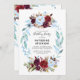 Dusty blue and burgundy red watercolor flowers wreath trendy style birthday party invitations