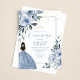 Dusty Blue and Gold Floral Quinceañera Invitation