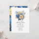 Dusty blue and gold floral wedding invitation with elegant typography customisable to your event specifics.