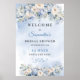 Boho Elegant Dusty Blue and Ivory Flowers Bridal Shower count down Welcome Sign poster 24x36 fully editable