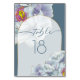 TABLE NUMBER CARDS | Modern text fits nicely inside this beautiful sheer white gold edged frame that shows the underlying fantasy Dusty Blue and Lilac Exotic flowers edged in gold - original artwork © by WhimsicalArtwork™.