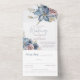 Dusty Blue and Mauve Floral Elegant Wedding All In One Invitation