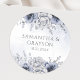 Dusty Blue And Navy Floral Elegant Wedding Classic Round Sticker