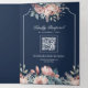 Dusty Blue and Pink Floral Navy QR Code Wedding Tri-Fold Invitation