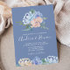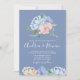 Romantic floral wedding invitation featuring dusty blues and pinks.