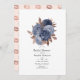 Elegant rose gold, navy and dusty blue flower bridal shower invitation with accents of blush pink customisable to your event specifics.