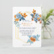 Dusty Blue and Rusty Peony Floral Gold Wedding Invitation