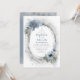 Dusty blue and silver glitter wreath baptism invitations