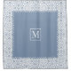 Dusty blue and white damask pattern and square with scalloped borders shower curtain. It showcases a dusty blue square with scalloped borders in the centre with a damask border and your monogram. You can personalise it with your family name and monogram.