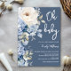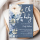 Dusty blue and white floral baby shower invitation