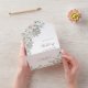 This Bohemian Wedding invitations features blooming light dusty blue and grey flowers.