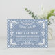 Dusty blue and white papel picado Quinceañera fifteenth birthday invitation. This Mexican folk art style invitation features white flowers and leaves on dusty blue background.