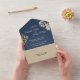 This Dusty Blue Autumn Boho wedding all in one invitation combines an antique vibe with a retro bohemian wildflower look. The elegant, neutral beige wildflowers on top of the dusty blue, navy background, with its classy calligraphy typography, allows for a formal but wild and floral, vintage style marriage celebration theme.