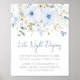 Make your event special with this Wildflower Baby Shower with our cute and lovely printable Late Night Diapers Sign featuring adorable Blue Spring Floral Baby Shower theme. Download, personalise, and create lasting memories with this perfect touch for your joyous celebration!