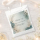 Dusty Blue Beige Boho Chic foliage wreath Wedding favor bag. Celebrate your special day with this exquisite Boho chic elegant modern wedding design. The design beautifully combines a soft dusty blue beige watercolor palette with a sophisticated botanical nature theme. The aesthetic is both simple minimal and charming, featuring a delicate wreath foliage border and subtle leaves glitter sparkle accents that catch the light. A lovely handwritten script is used for the names, adding a personal and romantic touch. This minimalist botanical leaves wedding invitation is the perfect choice for couples dreaming of an elegant, nature-inspired ceremony. As part of a customizable wedding collection, this AI-generated artwork allows couples to personalize it with their own names, text, and details, making every piece unique.
