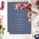 Delight your guests with this elegant watercolor floral invitation. Design with dusty blue background, exquisite hand painted floral corner detail and golden frame encasing your details. Flowers and foliage in dusty rose, blush pink, rose gold, peach, ivory, burgundy, honey, grey and green tones. Background in an elegant dusty blue tone. Part of our "Intricate Floral" wedding and events collection.
