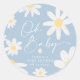 This round sticker is part of the Floral Daisy baby shower collection chraacterised by retro style with watercolor daisy flowers and dusty blue colour that is perfect for a boy's baby shower. With countless customisation options, this template is easily customisable to all events and easy to match with your colours.