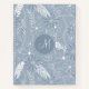 This pretty floral spiral notebook features a pattern of hand-drawn feathers, flowers and paislies in white on a dusty blue background with lighter and darker blue accents - personalise with her monogram - by katz_d_zynes